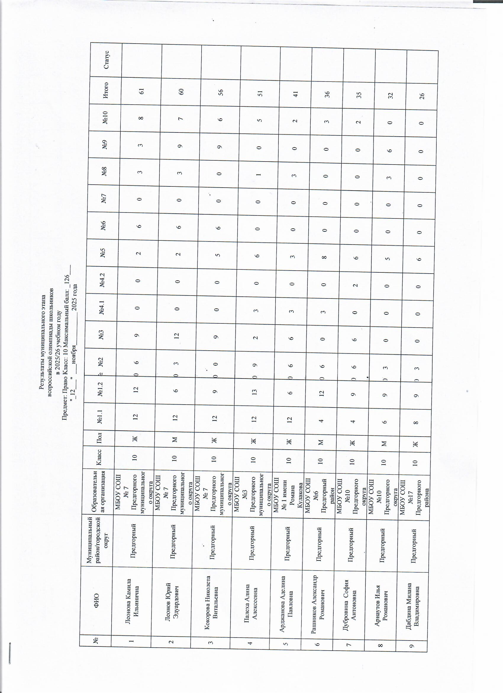 - Приказ №512 от 26 октября 2020 “О минимальном количестве баллов по каждому общеобразовательному предмету и классу, необходимому для участия в муниципальном этапе всероссийской олимпиады школьников в 2020/21 учебном году”